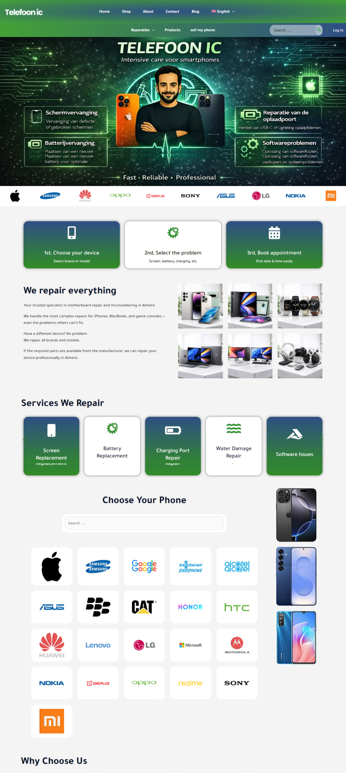 Telefoon-IC is a service booking website designed for a device repair business in the Netherlands.